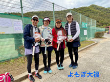 2020年11月11日に駒ヶ谷公園テニスコートで開催しました。コロナウイルスの影響で、エントリー数は12組、48名と少なかったものの、みんなで気持ちよくプレーを楽しみました。今回は、参加組数が少ないこともあり、220歳以上・以下合同で行いました。