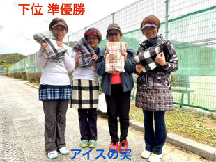 この後、天候がもてば再開するかジャンケンで終わらせるか相談していただき、下位トーナメントは続きはジャンケン大会となり、上位トーナメントは続行します!と元気よくコートに戻られました。15分ほどの雨でしたのでコートの状態はさほど悪くなく怪我もなく最後まで熱戦が繰り広げられました。